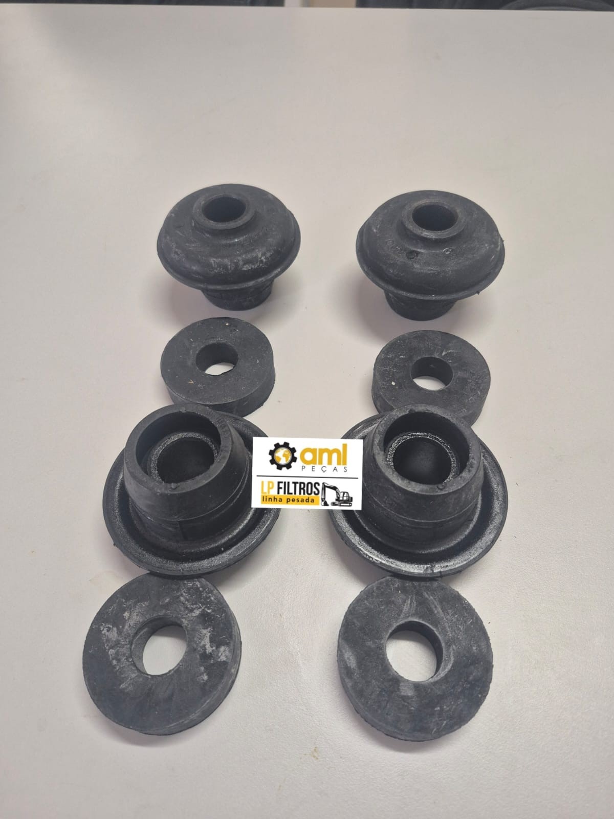 O Kit de coxim de cabine serve basicamente para sustentar a cabine e absorve vibração e impactos da maquina , deixando a operação mais confortavel para o operador e deixa a estrutura protegida .